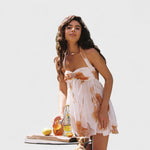 L'Arabella - Mini abito floreale in chiffon emana puro romanticismo - con delicati fiori pastello, una scollatura e splendidi strati cadenti di chiffon leggero. Perfetto per feste in giardino, brunch estivi o un bicchiere di rosé al sole.